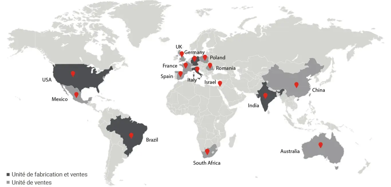 Porté par une culture de la qualité, de l’innovation et du partenariat, le groupe PLASSON s’appuie sur un réseau international de filiales et de partenaires pour répondre aux enjeux locaux avec efficacité et proximité. Ses produits sont aujourd’hui déployés dans les projets les plus exigeants à travers plus de 100 pays.