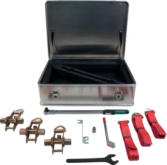 Composition : trois sangles à cliquet + couteau pour tube à essai de pression de la selle + clé dynamométrique.