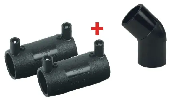 Ensemble NF 136-GAZ - 1 coude à 45° à embouts mâles + 2 manchons électrosoudables