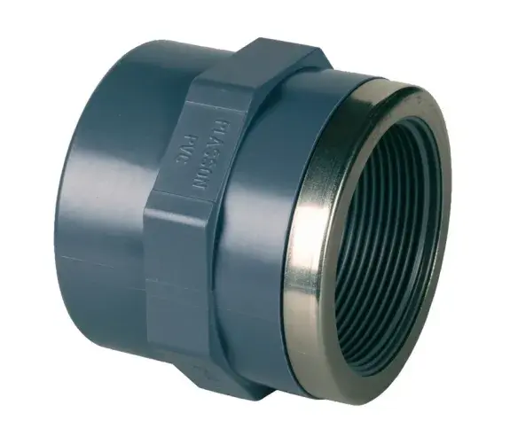 Corps : PVC-U. Taraudage : PVC-U. Cerclage : Acier inox AISI 304.