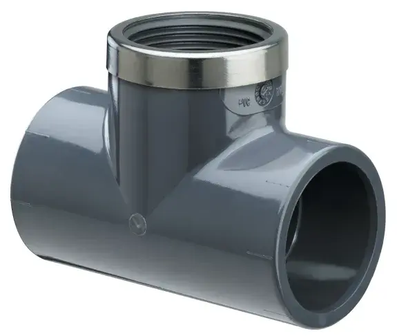Té PVC à 90° avec bague de renfort - A coller sur d - Taraudé sur Rp