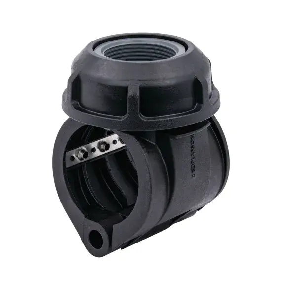 Collier de branchement - Dérivation taraudée ACME pour système de canalisations en PEHD ou PVC sous pression. Permet de créer des dérivations dans un réseau d'irrigation ou une prise pour arroseur.