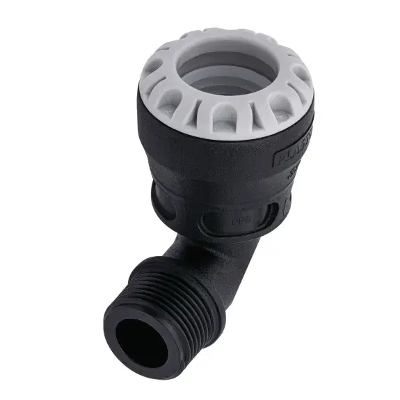 Adaptateur à encliqueter coudé à 90° - Fileté pour systèmes de canalisations PEHD pression.