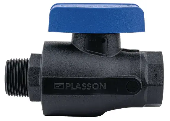 Corps : Polyamide renforcé fibre de verre. Poignée : Polypropylène, copolymère haute qualité. Filetage : Polyamide renforcé fibre de verre. Taraudage : Polyamide renforcé fibre de verre. Joints : EPDM. Sphère : PPRV. Axe de manœuvre : PPRV.